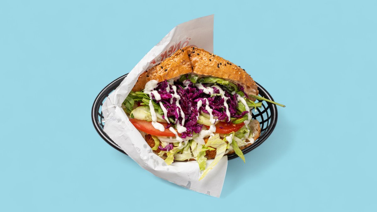 alle Gerichte werden mit Eisbergsalat, Zwiebeln, Gurken, Tomaten, Rotkraut und Rucola zubereitet und mit einer Soße deiner Wahl serviert („Falafel” wird ohne Eisbergsalat, Zwiebeln, Gurken, Tomaten, Rotkraut und Rucola zubereitet und ohne Soße serviert)
