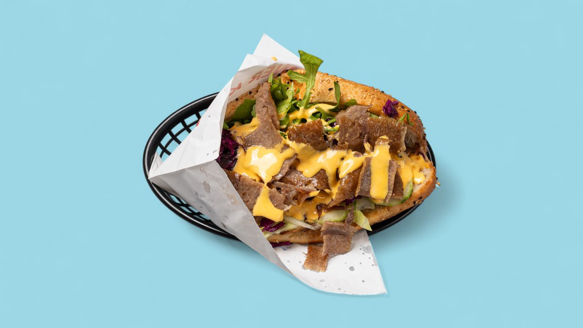 Döner mit einer Fleischsorte deiner Wahl, 3x Soßen (Knoblauchsoße, Cocktailsoße und Currysoße), Pommes frites und einem Getränk 0,33 l deiner Wahl