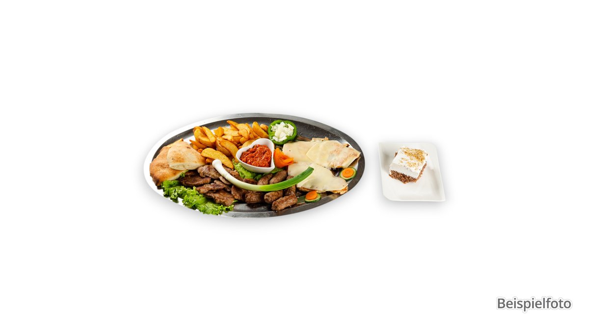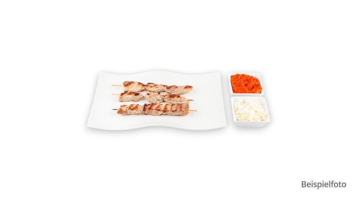 1x Lammspieß 1x Hähnchenspieß 1x Adanaspieß 2x Lammkoteletts 1x Hähnchenflügel Drehspießfleisch