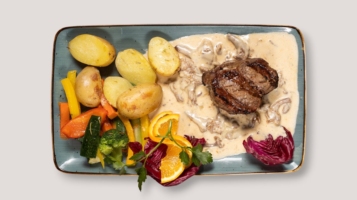 alle Gerichte werden mit Gemüse der Saison und Babykartoffeln serviert