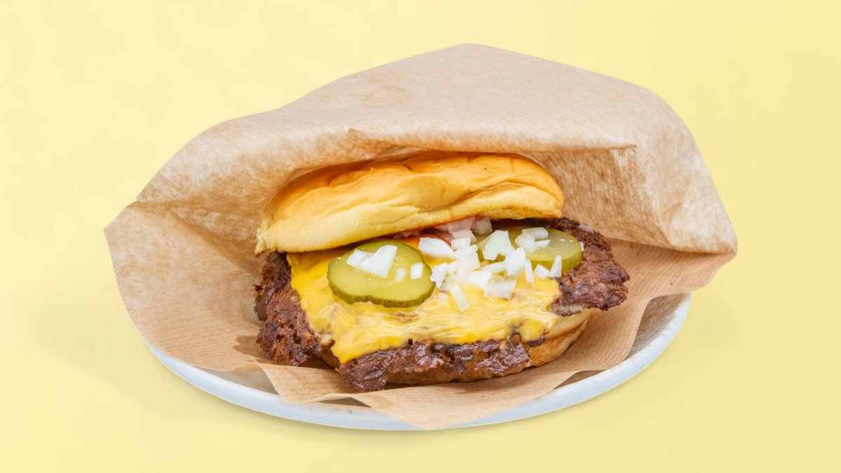 mit Rindfleisch-Patty, Käse, Zwiebeln, Gewürzgurken, Ketchup und Senf
