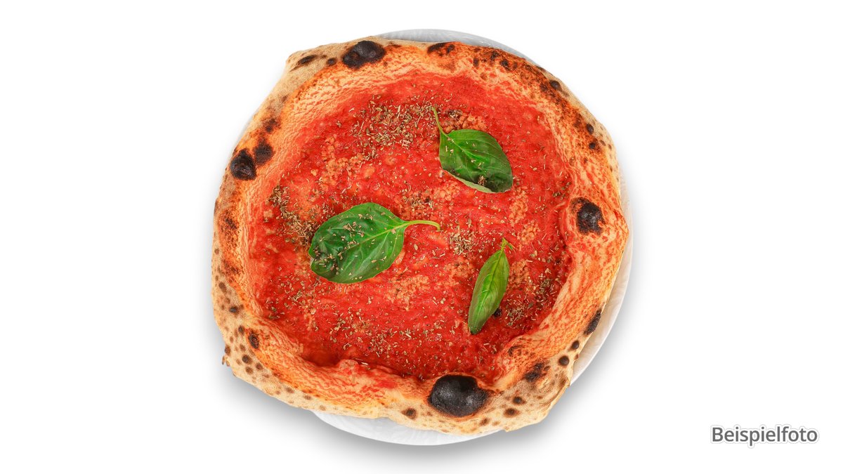 alle Pizzen werden mit Tomatensoße und Käse zubereitet, und in einer Größe deiner Wahl serviert („Pizza Calzone“ wird nur in einer Größe serviert)