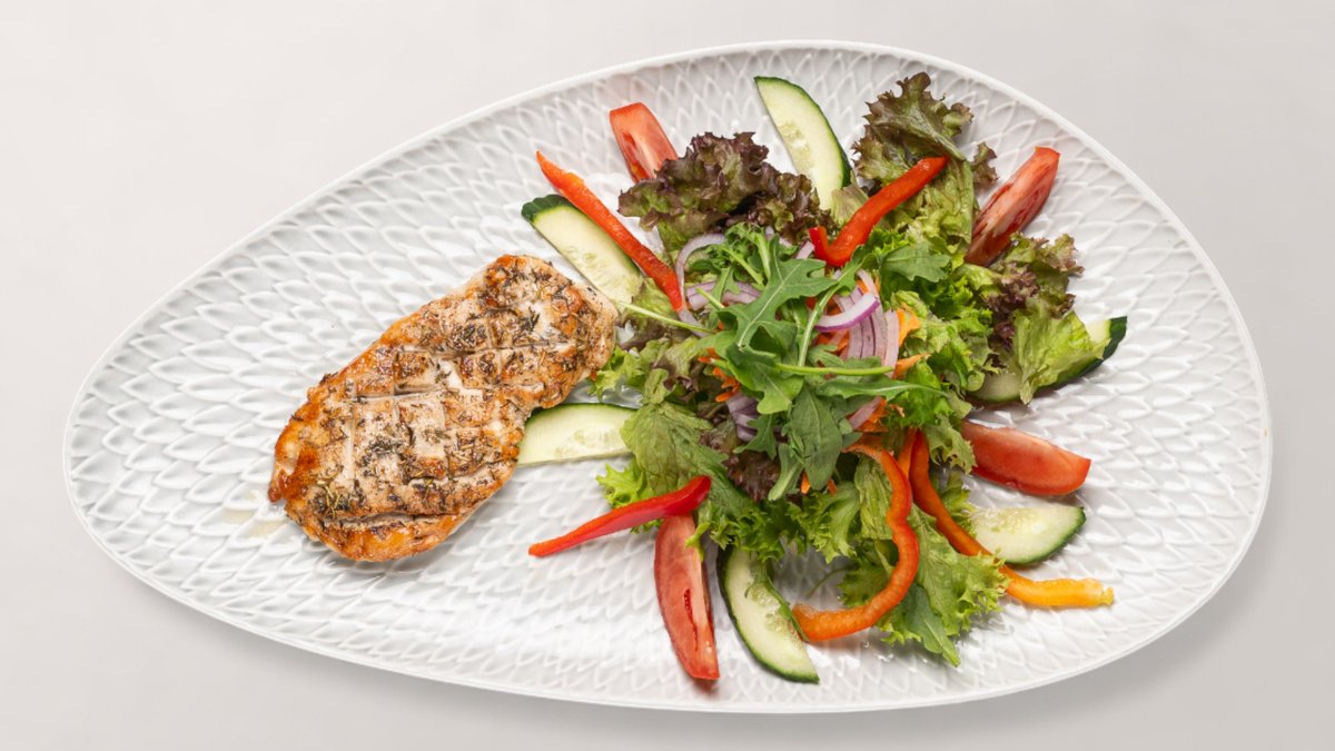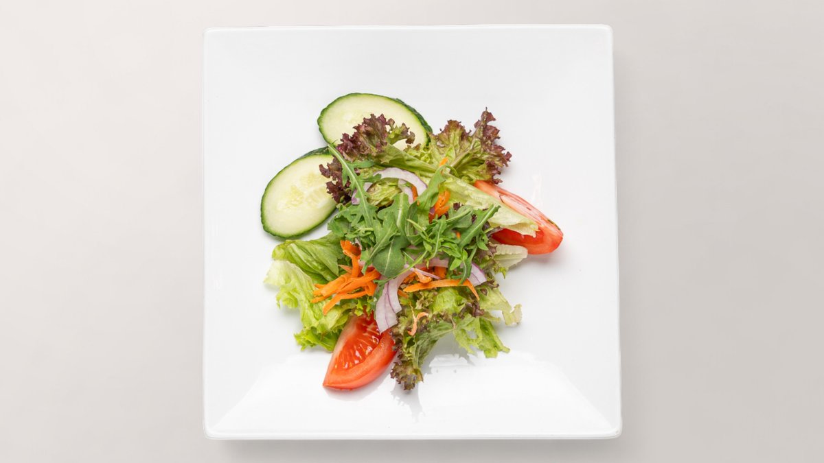 mit Gurken, Tomaten, Karotten und Zwiebeln
