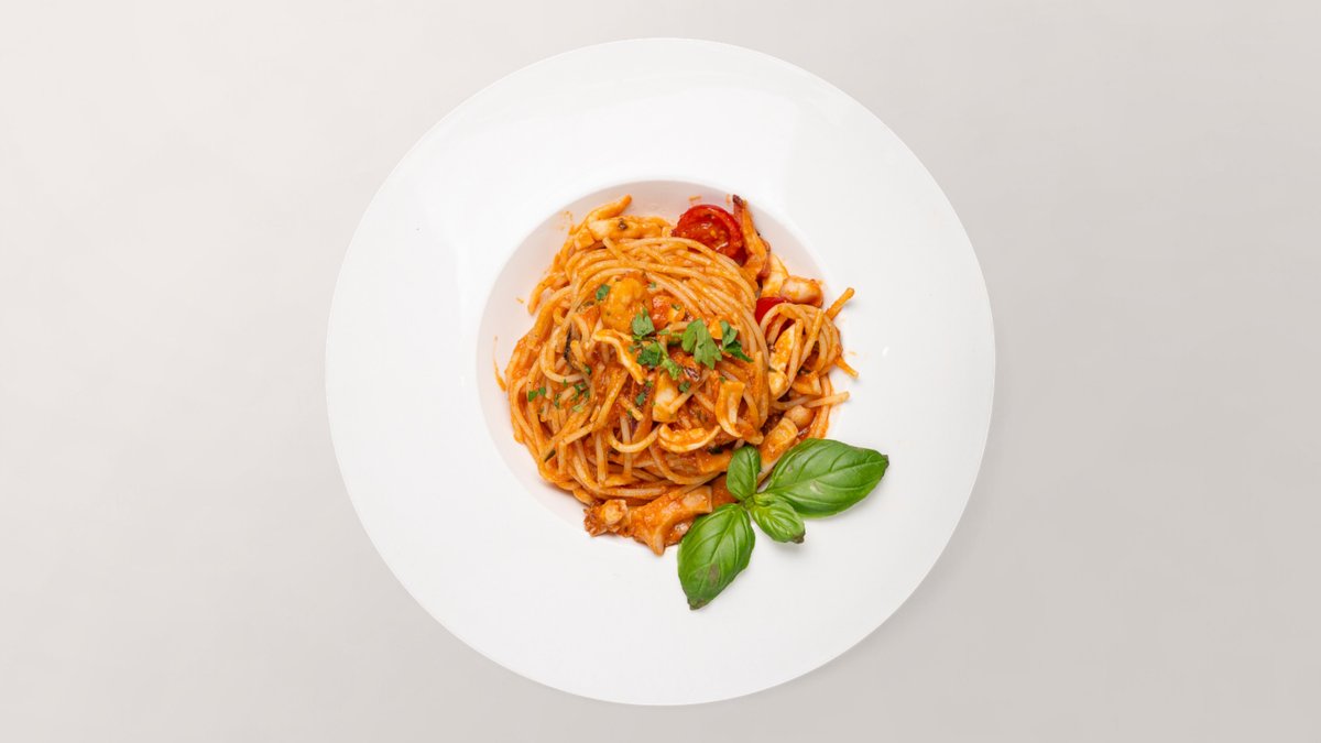 mit Garnelen, Meeresfrüchten und Knoblauch