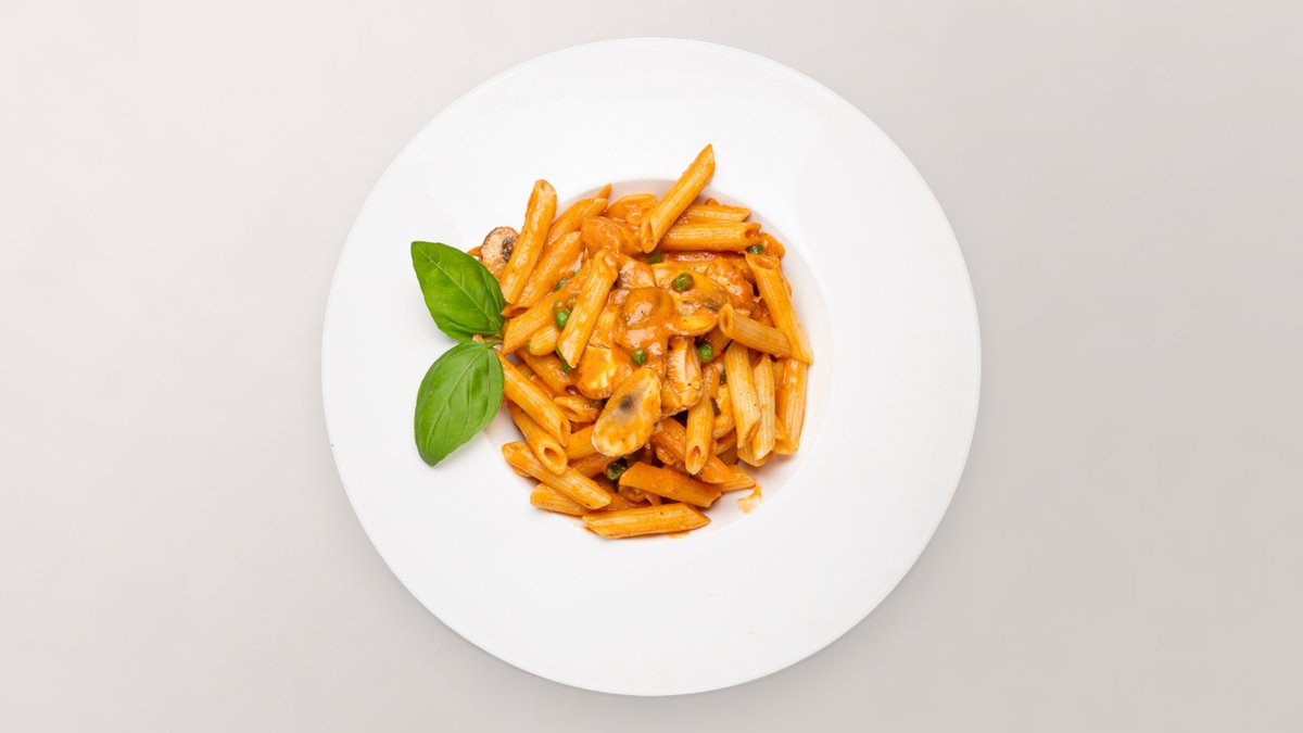mit Hähnchenbrustfilet, Champignons und Erbsen
