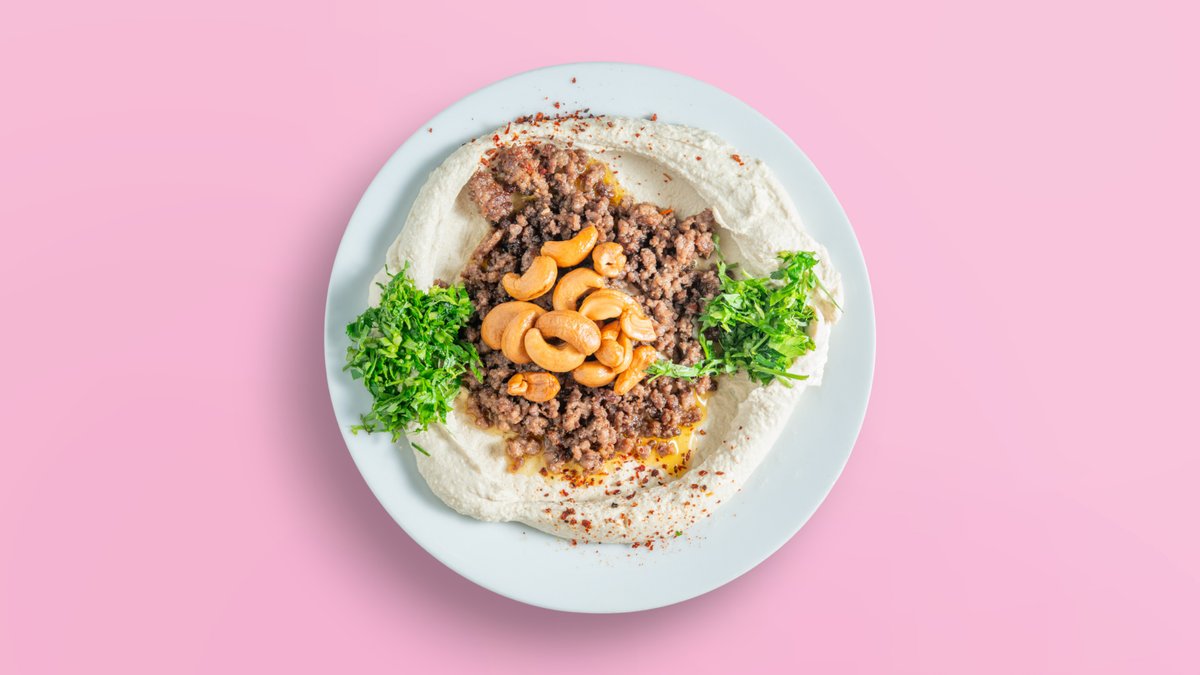 Samna, Tahini, Hummus, Mandeln, Pistazien, Rinderhackfleisch und Gewürze