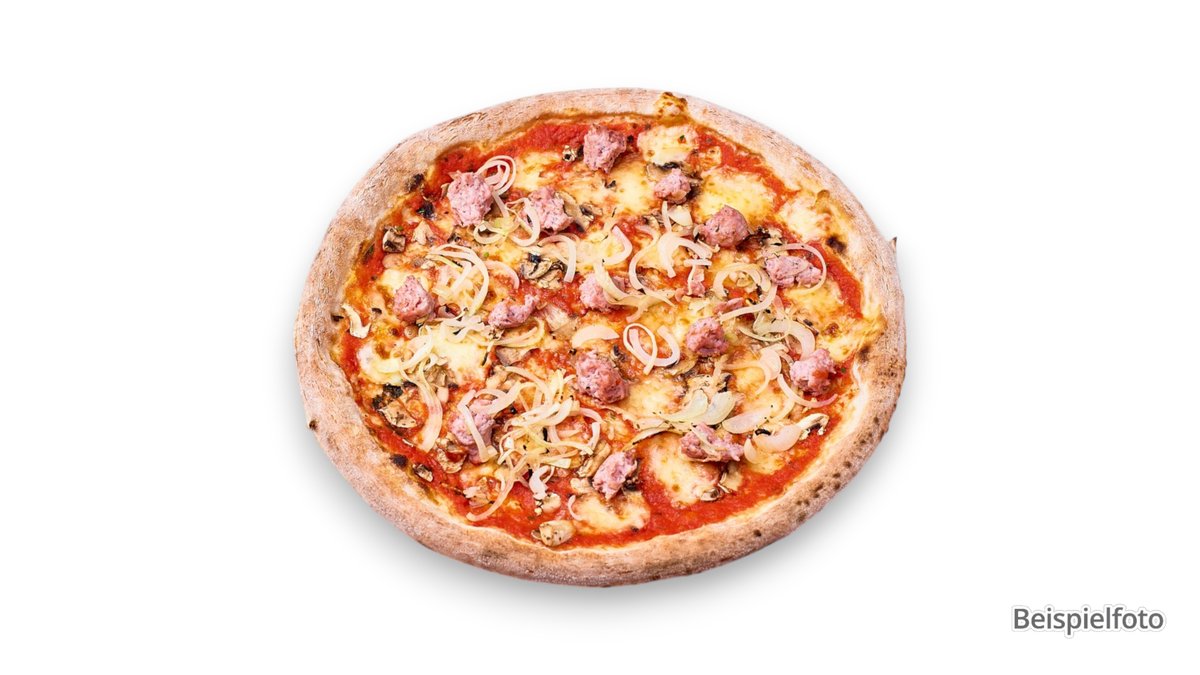 alle Pizzen werden in der Größe von Ø 30 cm sowie mit Tomatensoße und Käse zubereitet