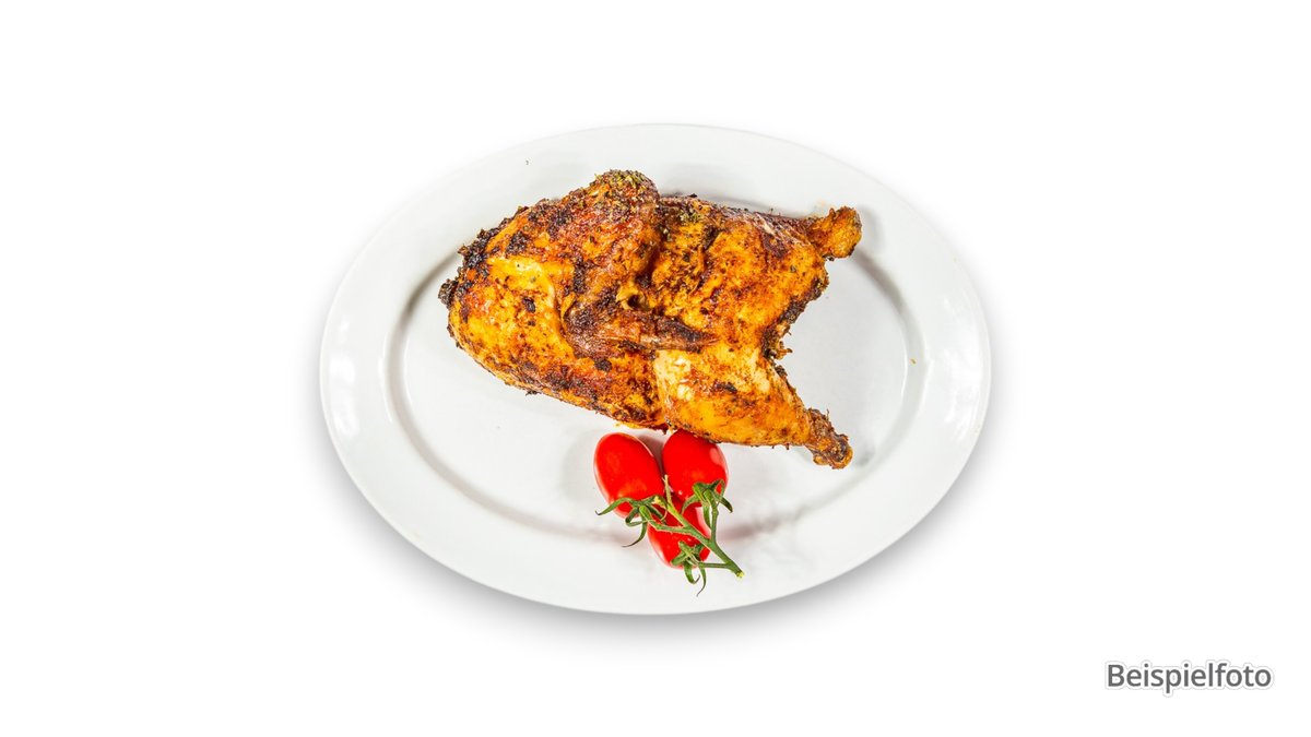 1x Halbes Hähnchen mit Pommes frites und Salat, 1x alkoholfreies Getränk 0,331 deiner Wahl