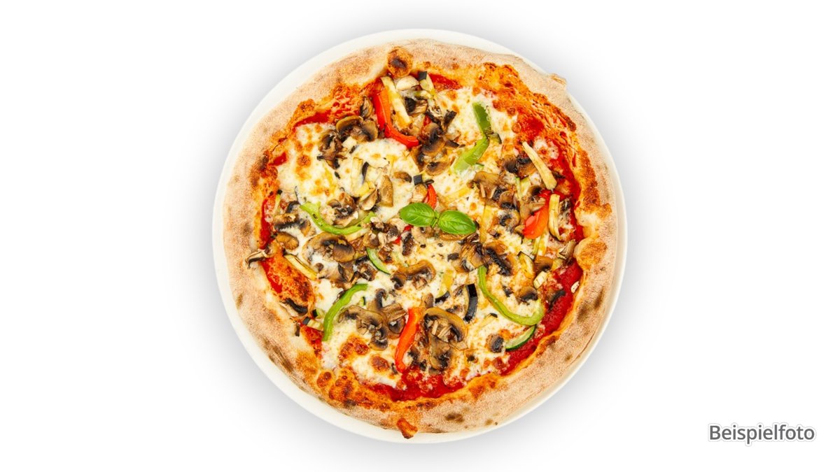 mit Tomatensoße, Käse, Gorgonzola, Zwiebel und Pilzen