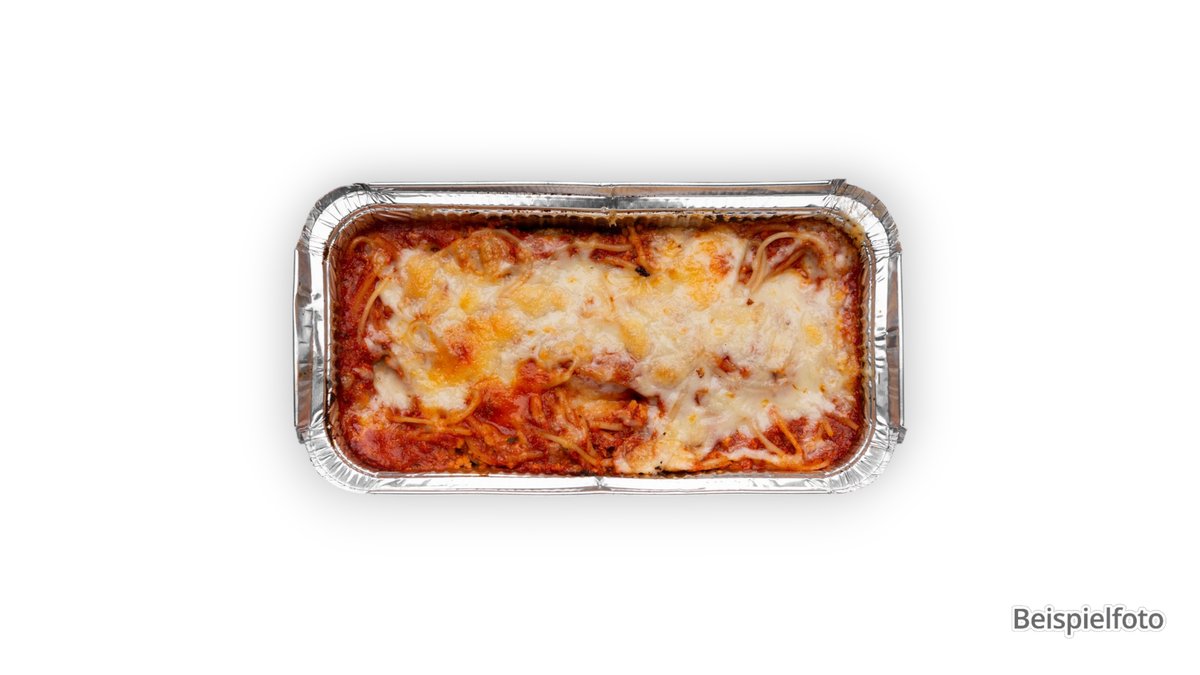 mit Tomatensoße, Erbsen und Hackfleisch vom Schwein