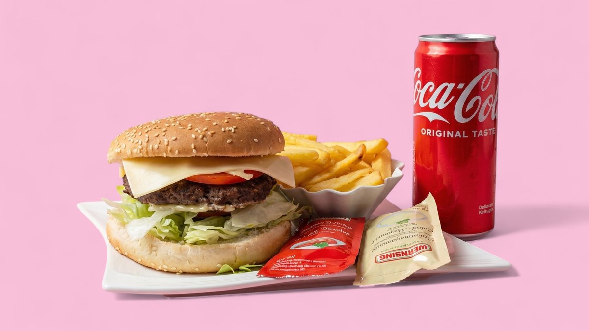 1x Cheeseburger, 1x Pommes frites, 1x alkoholfreies Getränk 0,33 l deiner Wahl