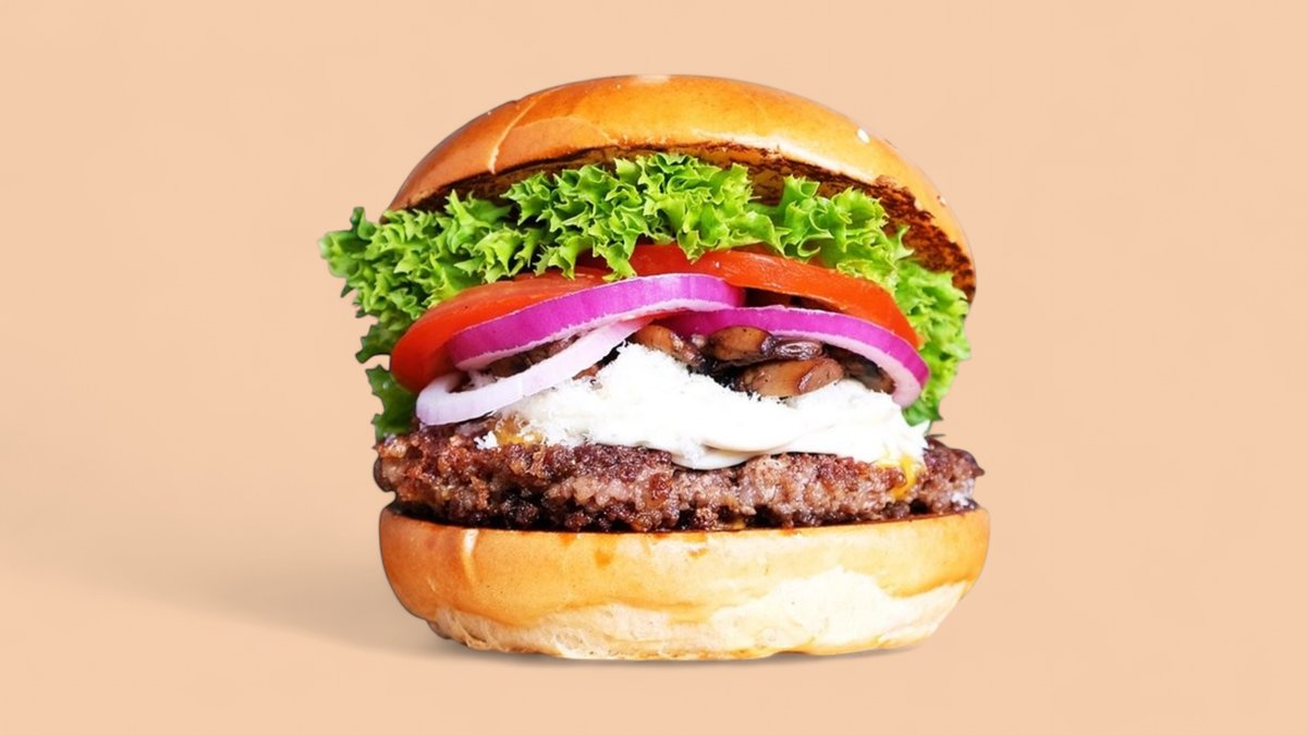 alle Burger werden mit Pflücksalat, knackigen Tomaten, roten Zwiebeln und Jamy's hausgemachter Soße belegt