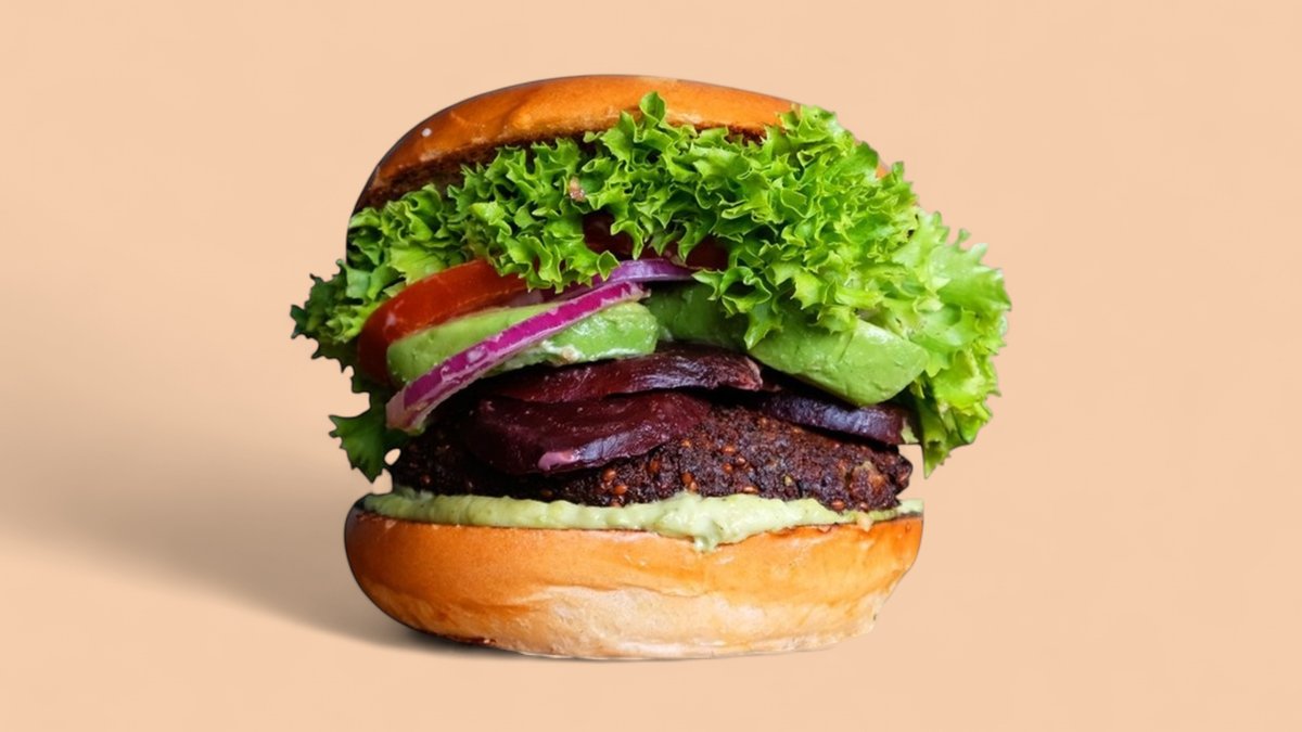 mit Falafel Patty, Avocado Scheiben, Rote Bete, Portobello Pilze und Sour Cream