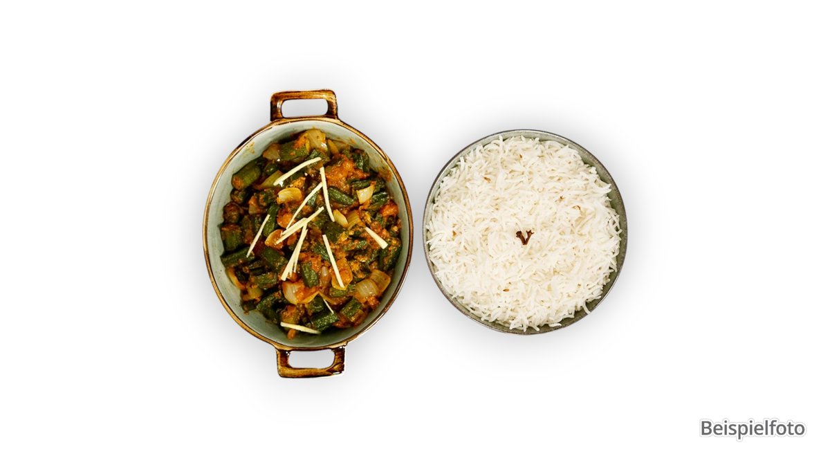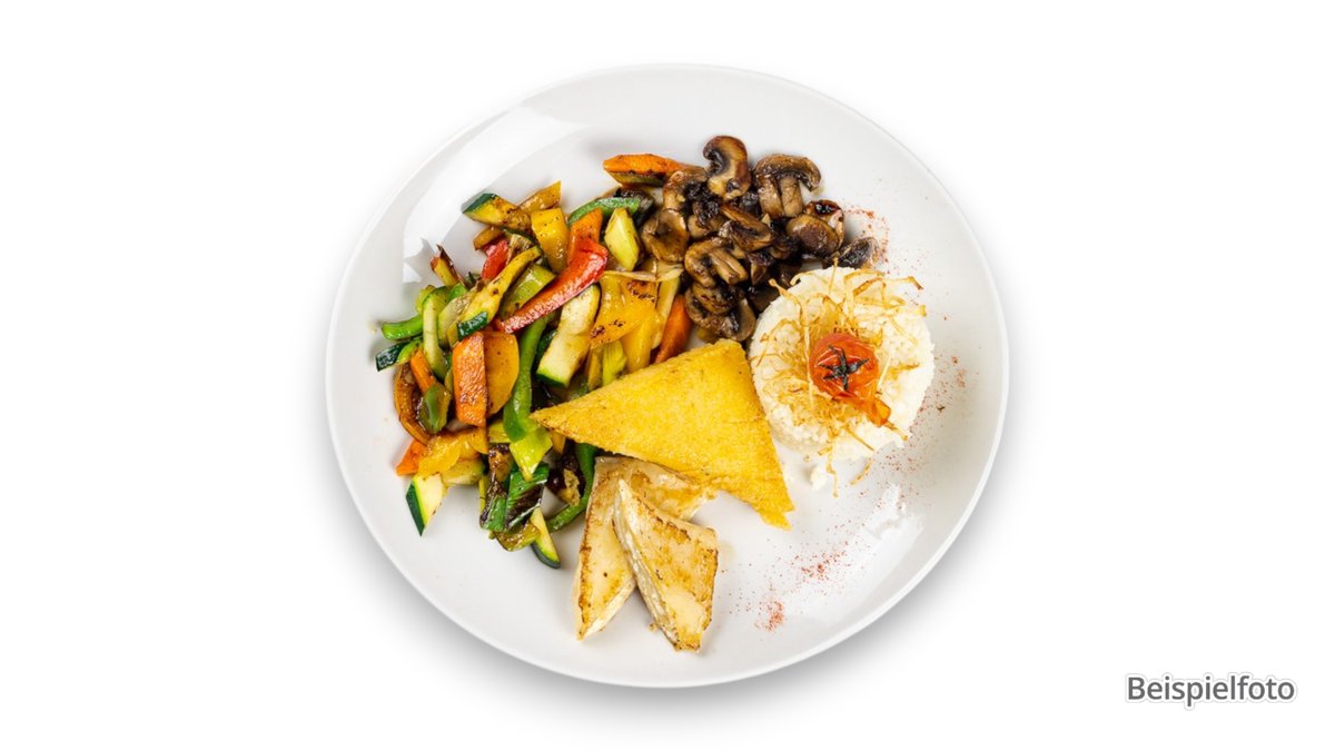 frisches GemĂĽse mit Safranreis und Salatbouquet
