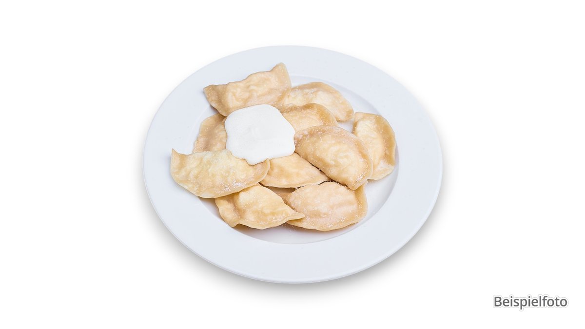 gebratene Hefeteigtaschen gefĂĽllt mit gestampften Kartoffeln und Zwiebeln