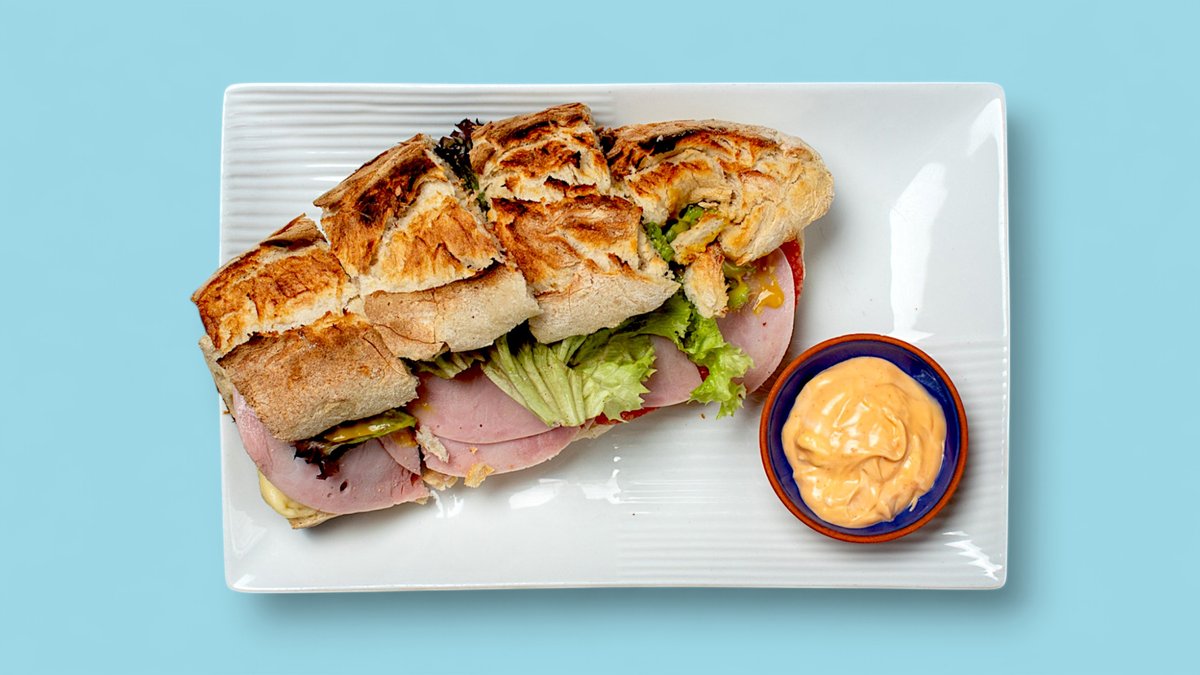 mit Käse, Tomaten, Gurken, Honig-Senf-Soße, Salat und einer Fleischsorte deiner Wahl