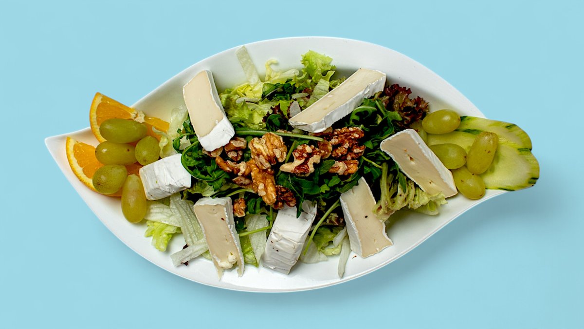 mit französischem Camembert, Walnüssen, blauen Weintrauben und knusprigem Baguette