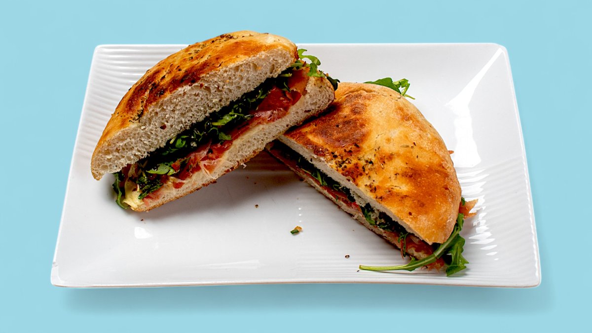 mit Serranoschinken, Käse, Tomaten und Rucola