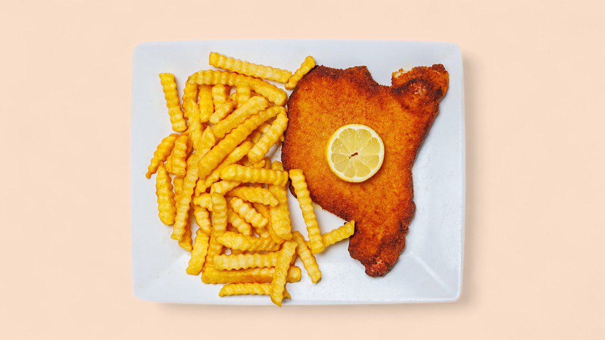 vom Schwein, mit Pommes frites