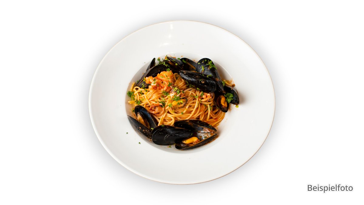 mit Tomatensoße, Meeresfrüchten und Knoblauch