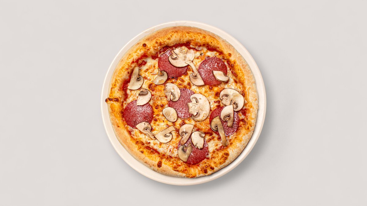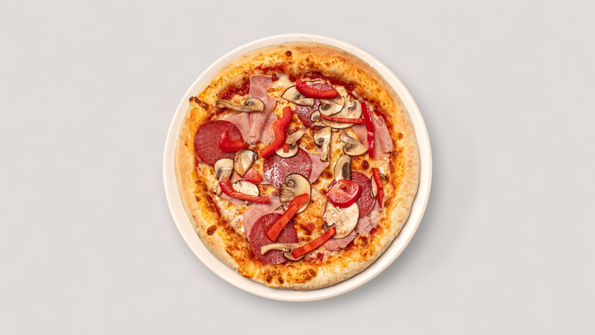 mit Rindersalami, Putenschinken, Pilzen und Paprika