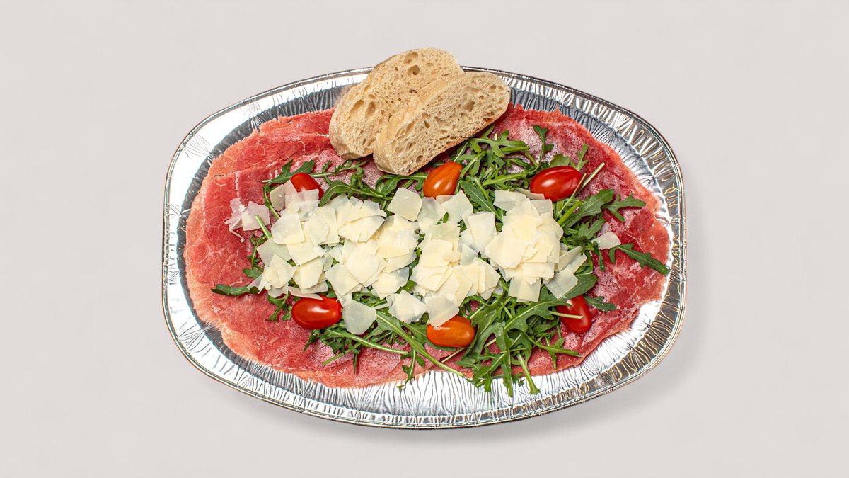 mit Rindercarpaccio, geraspeltem Parmesan und Rucola