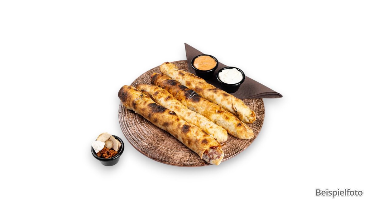 alle Gerichte werden mit Zwiebeln und Tsatsiki zubereitet („Pfälzer Wurstsalat” wird ohne Tsatsiki zubereitet)