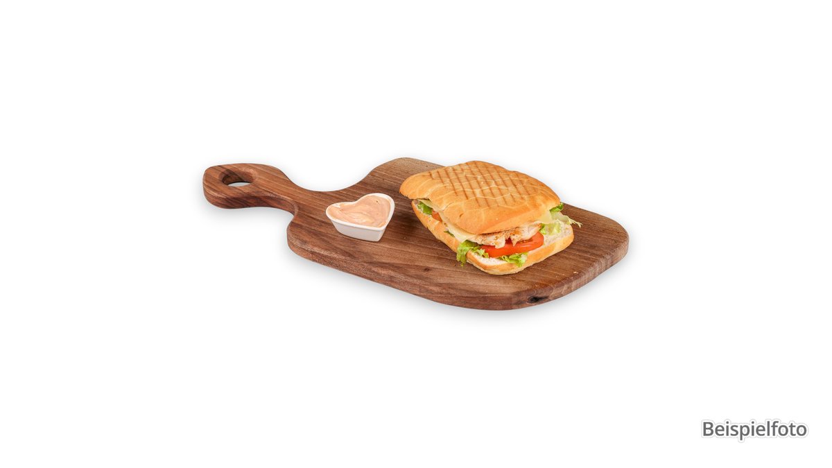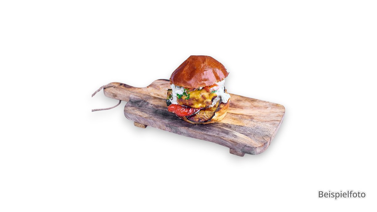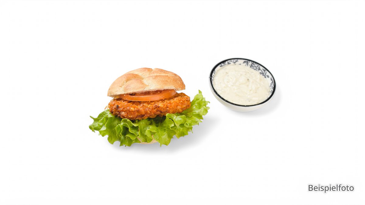 mit Käse, Tomaten, Eisbergsalat, Röstzwiebeln, Ketchup und Senf