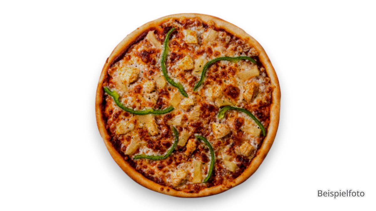 mit Salsasoße, Käse, Hähnchenstücke, Mais und milder Peperoni