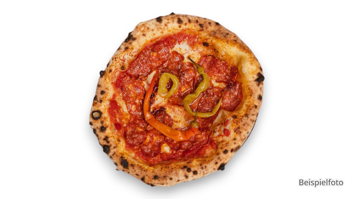 Jede Pizza ist Ø 28 cm groß und wird nach amerikanischer Art mit dickem Boden zubereitet.