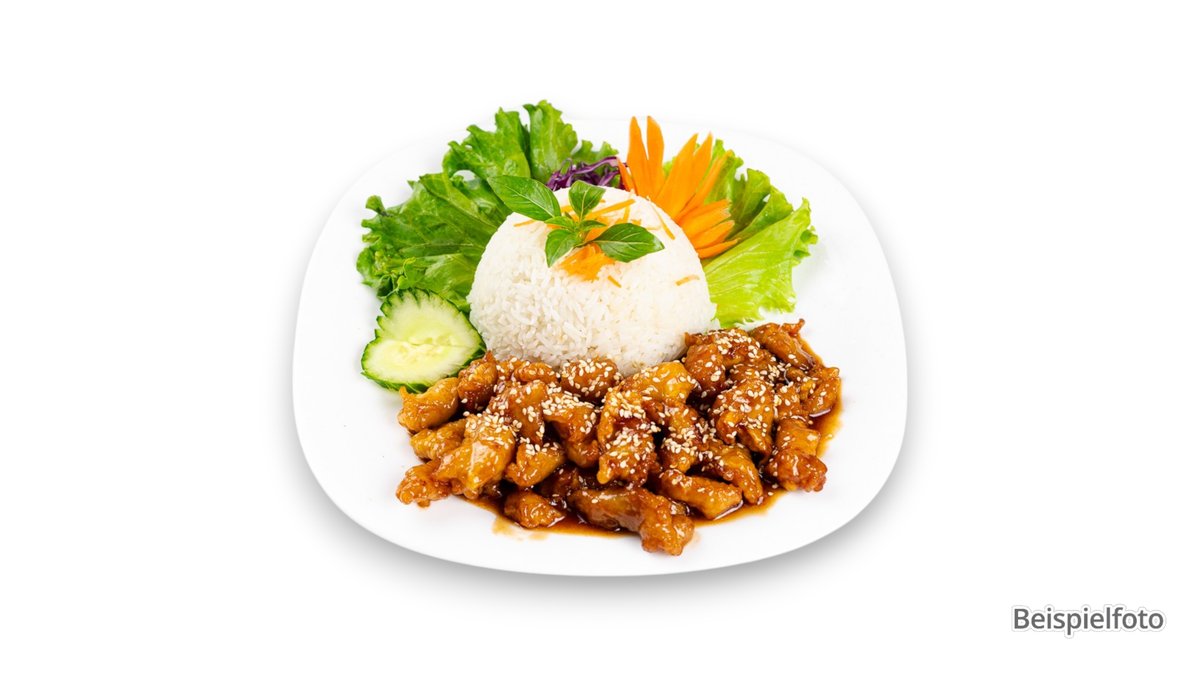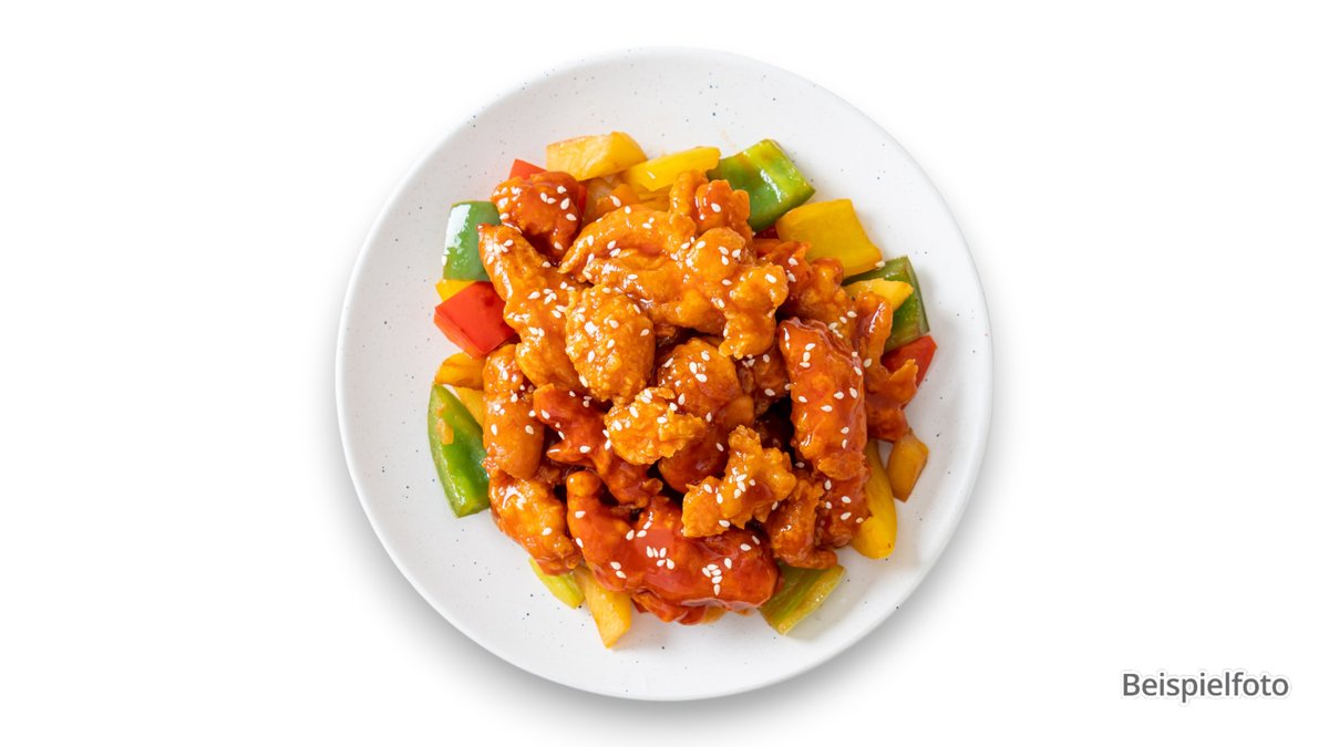 vegetarisch mit Gemüsefüllung und Süß-Sauer-Soße