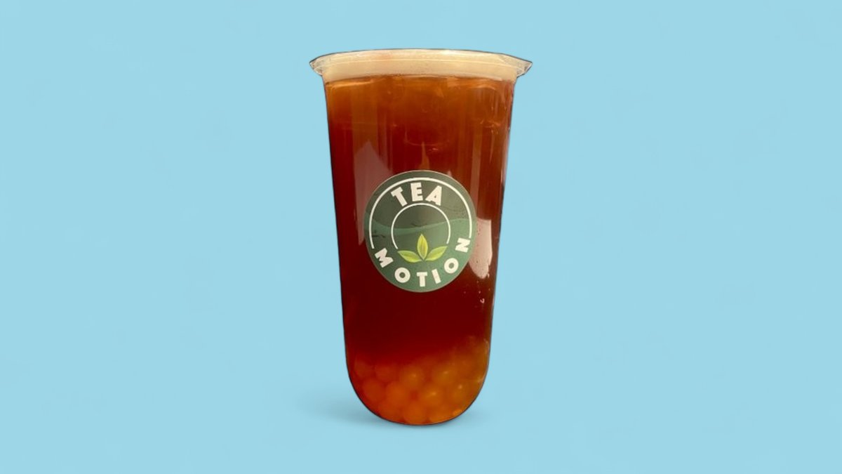Ein Eisteegetränk mit Pfirsichgeschmack.