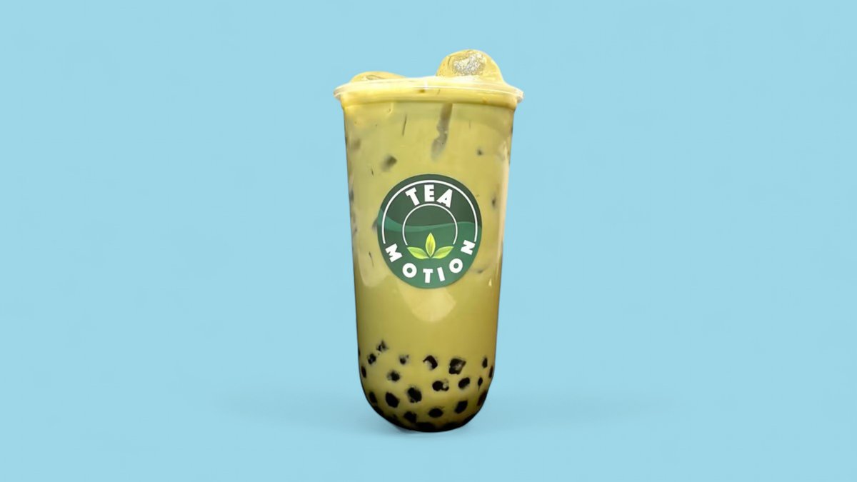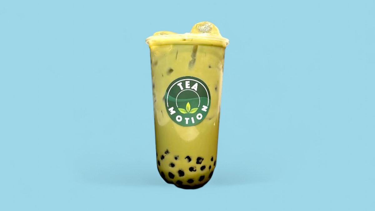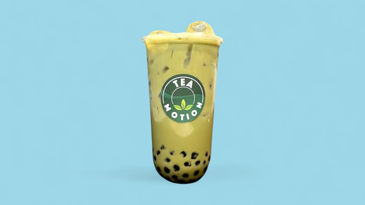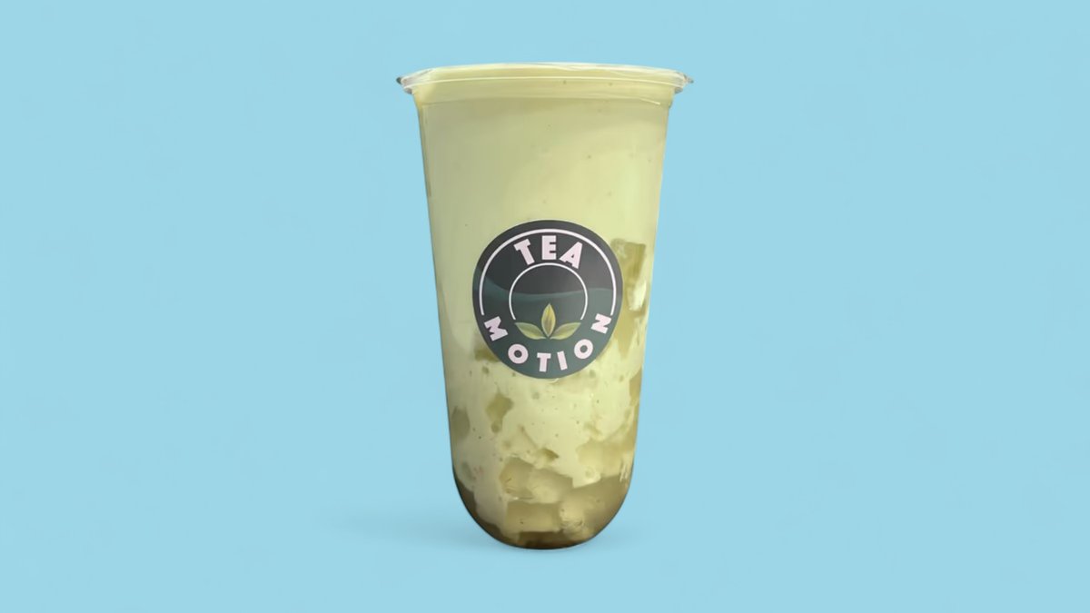 Ein cremiger Smoothie mit dem charakteristischen, leicht herben, grasigen und süßen Geschmack von Matcha-Pulver.