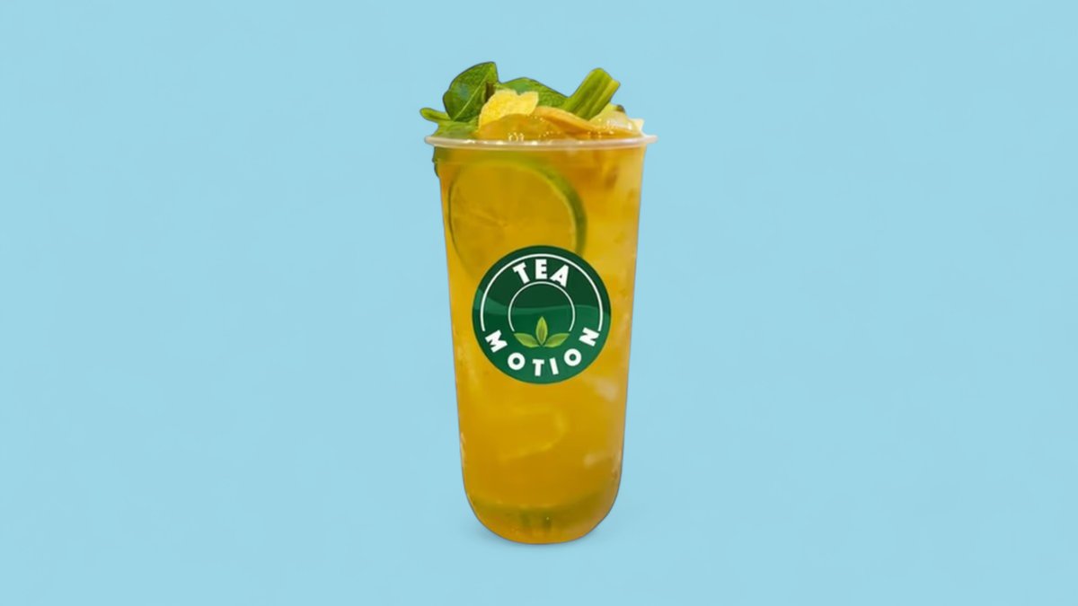 Ein tropischer Eistee mit dem saftigen, süßen Geschmack von reifen Mangos.