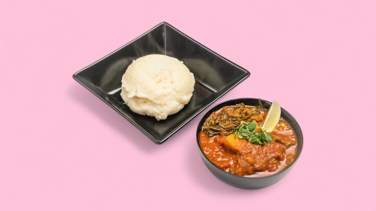 traditionell afrikanische Grünkohl-Soße mit frischem Gemüse, aromatisch gewürzt und rein pflanzlich