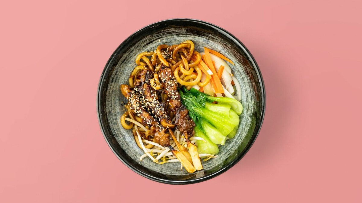 Udon nuldeln Mit Gemüse in Teriyaki-Soße