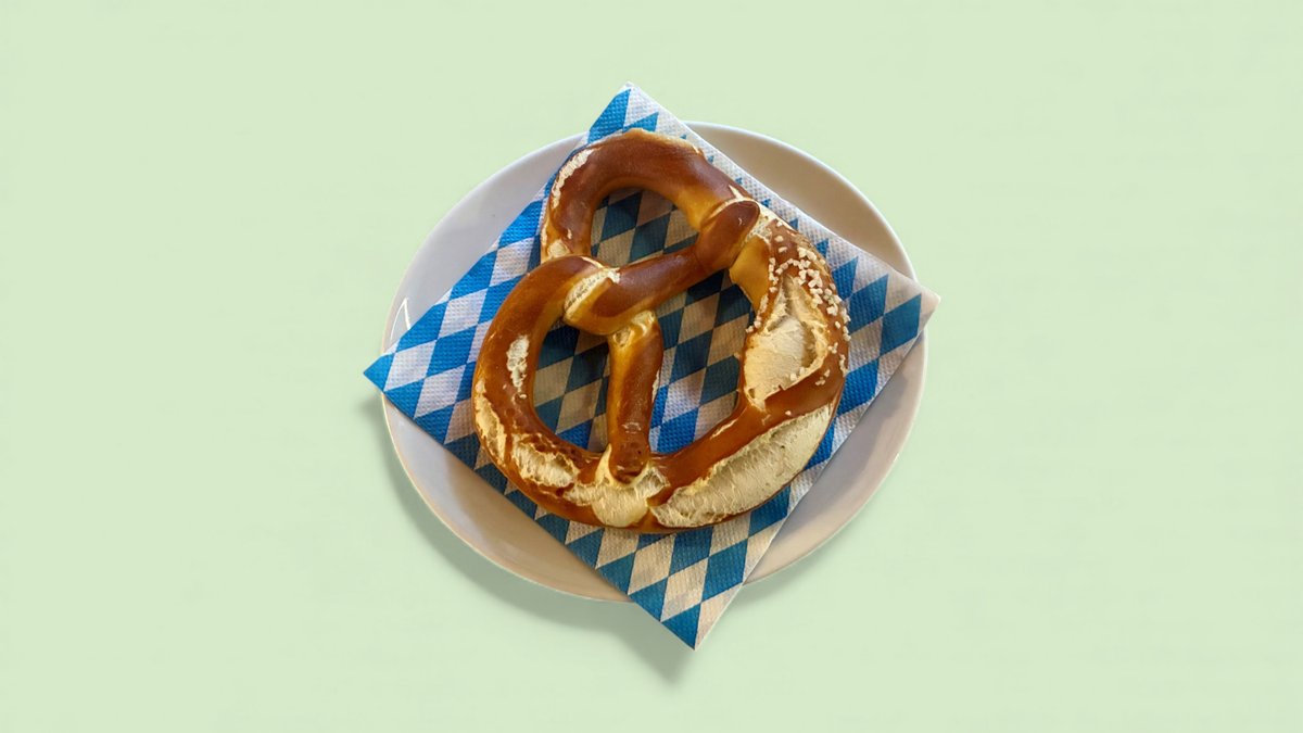 mit einer Breze, Zwiebelringen und Salzstangerl