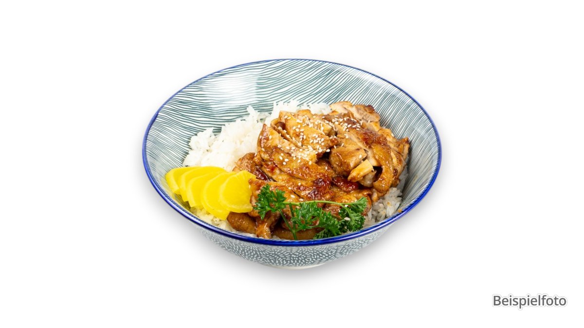 Hähnchenstücke 150 g, Teriyaki-Soße, Basmatireis, Edamame, Mango, Frühlingszwiebeln, Sesamkörner
