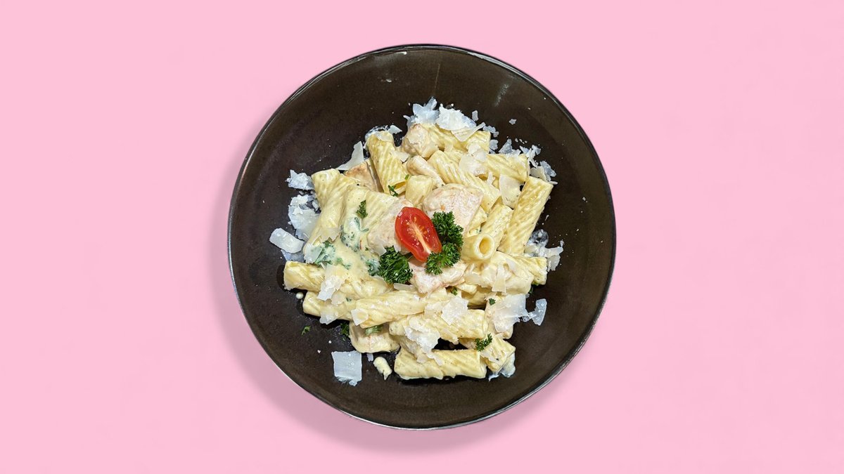 mit Hähnchenbrustfilet, Sahnesoße, Petersilie und Grana Padano