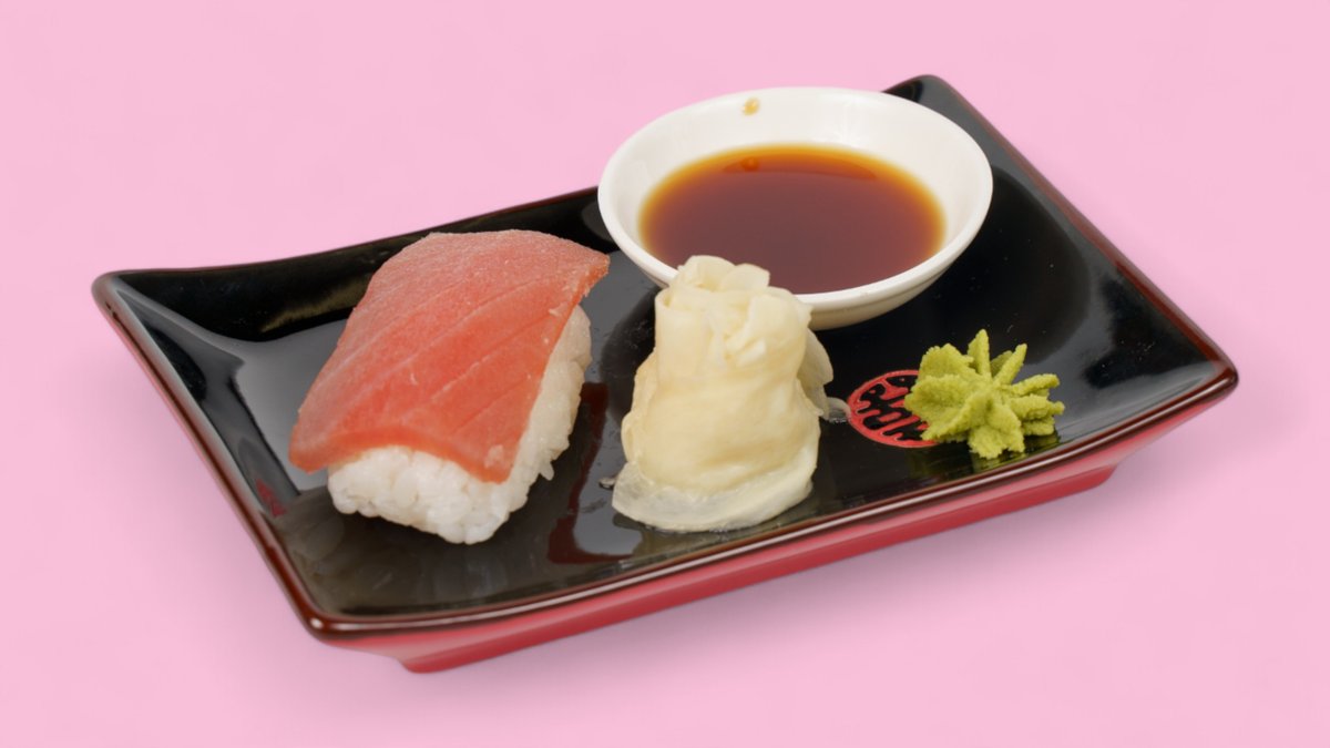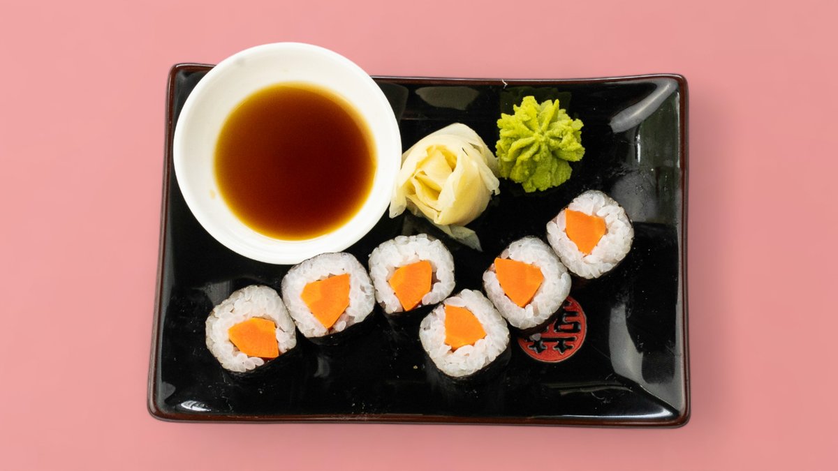 3x Tuna Maki 3x Lachs Maki 3x Eierstich Maki 3x Karotten Maki 3x Nigiri: Tuna Nigiri, Lachs Nigiri und Eierstich Nigiri