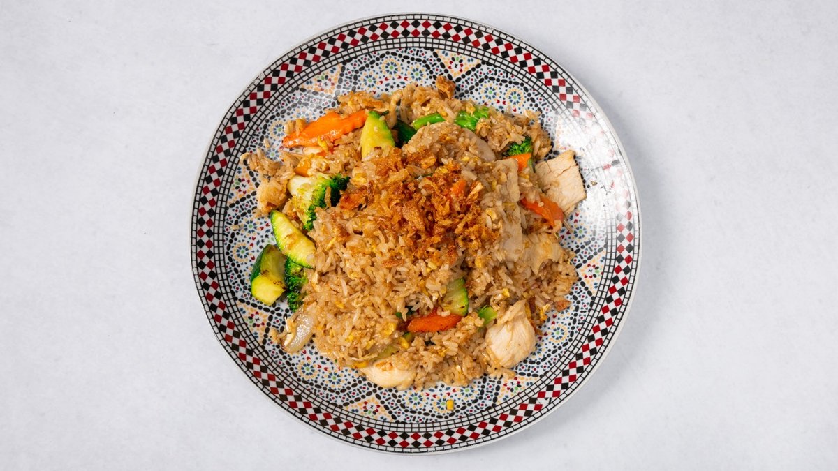 gebratener Reis mit Hühnerfleisch und Gemüse