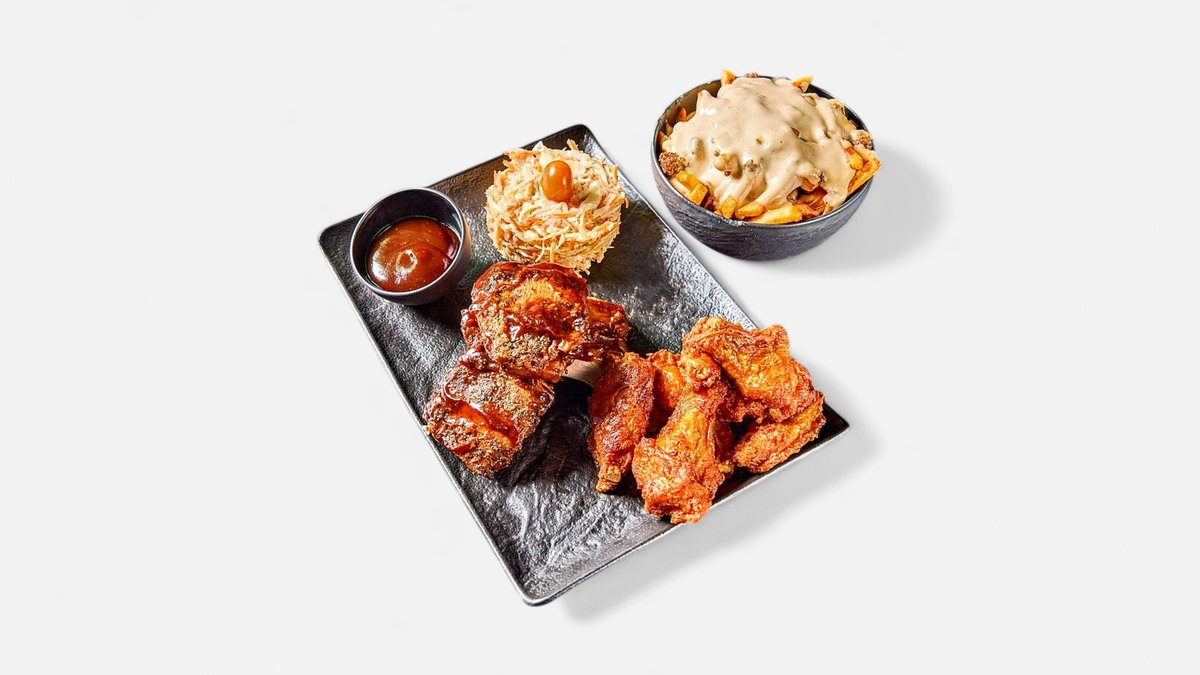 Chicken Wings, Ribs, Cole Slaw, Chili Cheese Fries