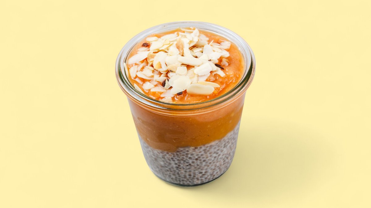 Chia-Pudding, gerettete Früchte und Mandelblättchen