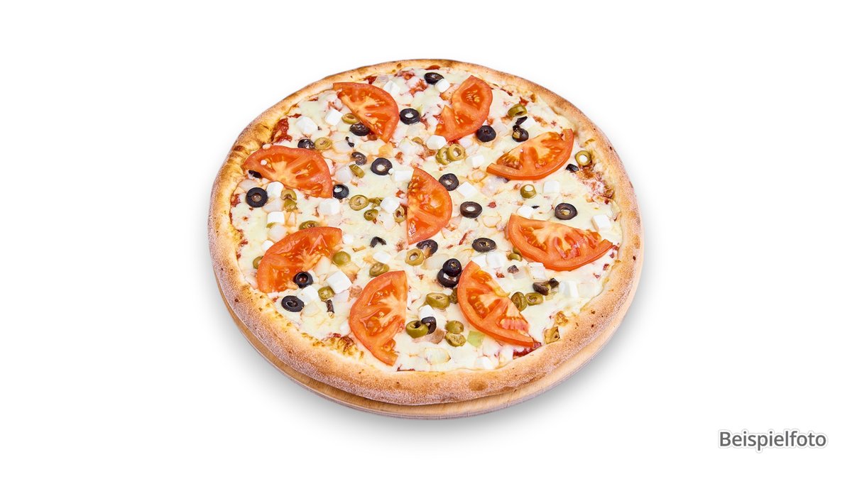 alle Pizzen werden mit Tomatensoße und Käse zubereitet und in einer Größe deiner Wahl serviert
