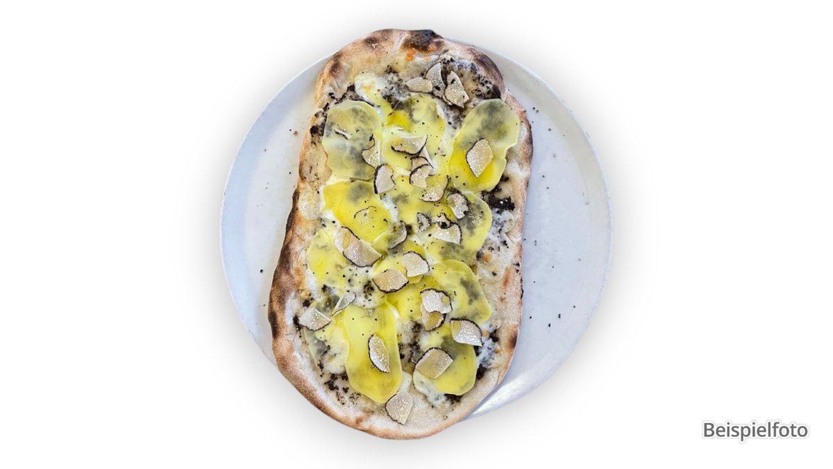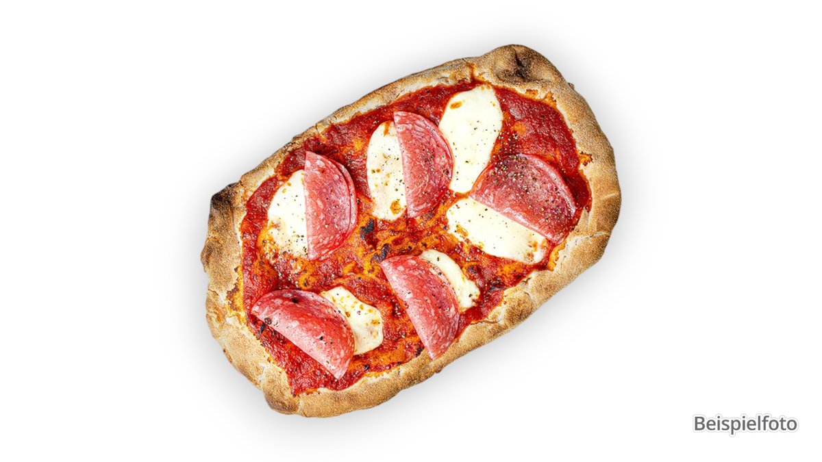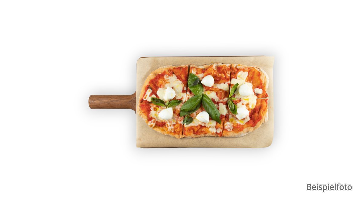 alle Gerichte sind ca. 240 g und werden mit Tomatensoße, Fior di Latte und Oregano zubereitet („Pinsa Quattro Formaggi” wird ohne Oregano zubereitet)
