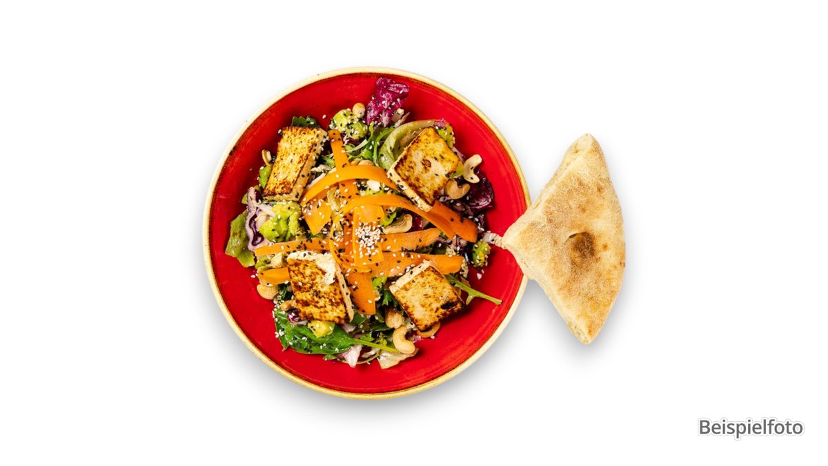 Tofu mit eingelegtem Gemüse, Tomaten und Gurken