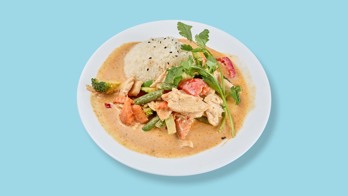 Hähnchenfleisch mit Gemüse und Kokos-Currysoße