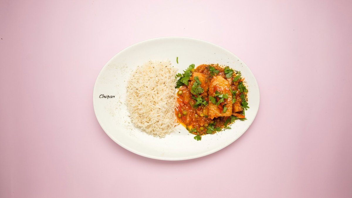 mit braun gebackenem Basmatireis, Zimt, Nelken, Lorbeer, Cumin, Kardamom, Sternanis und einer Beilage deiner Wahl