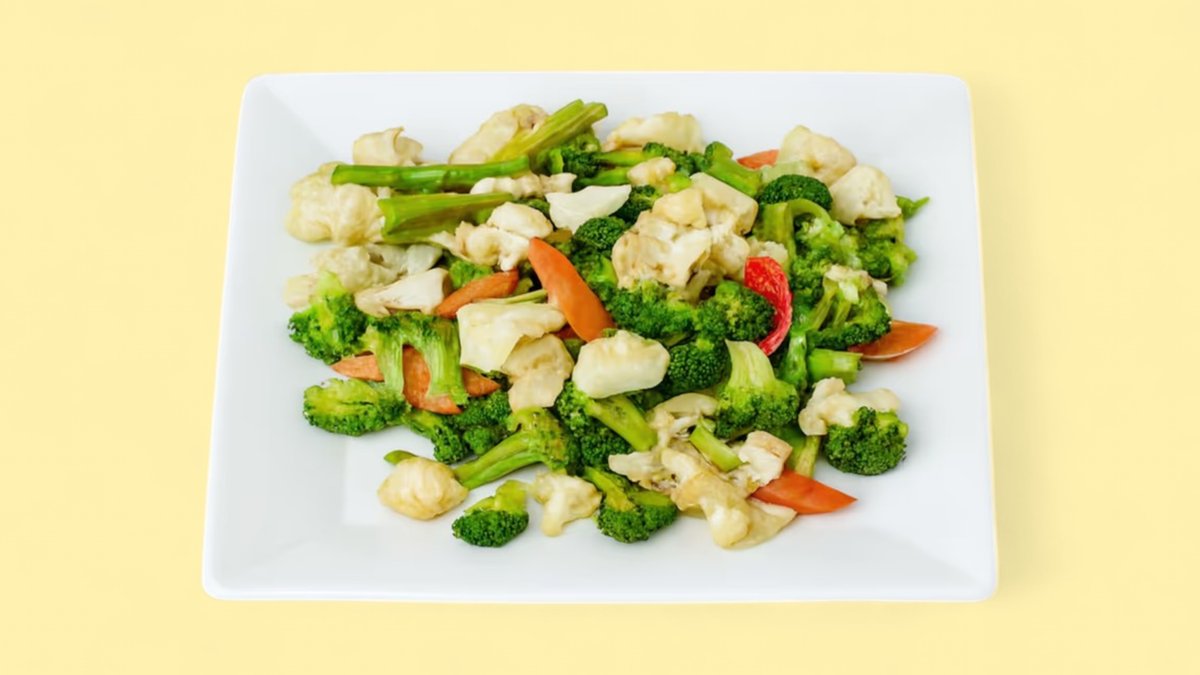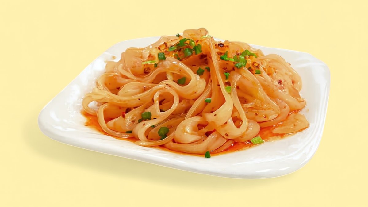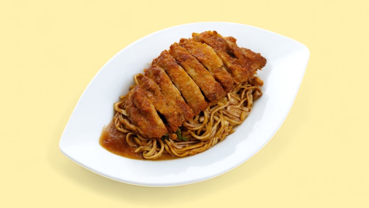 Frittierte Hüherfleisch auf gebratenen Nudeln