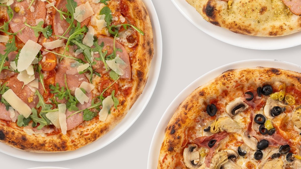 alle Pizzen werden in der Größe von Ø 32 cm und mit Mozzarella zubereitet